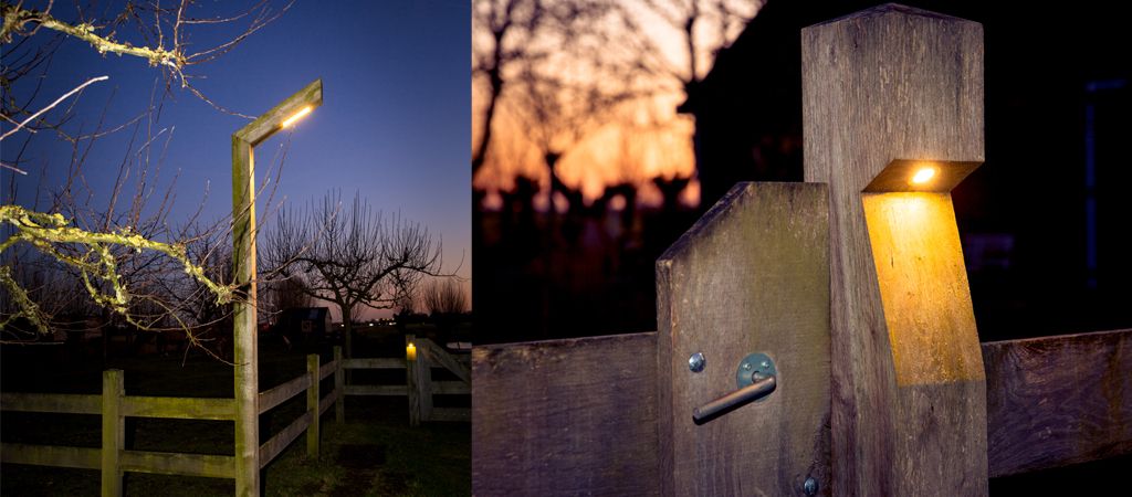 Eiken hekpaal verlichting