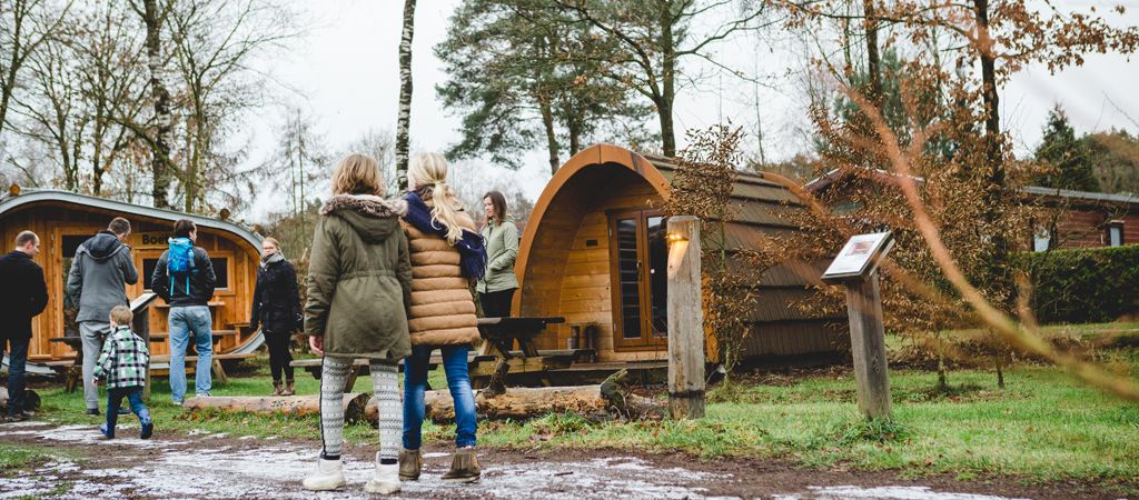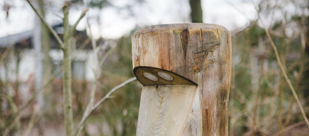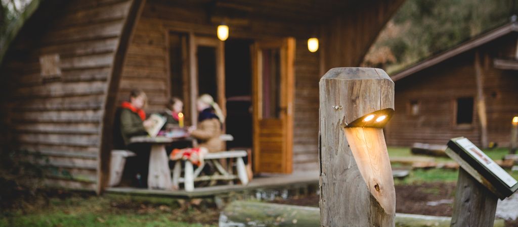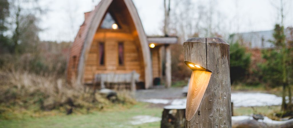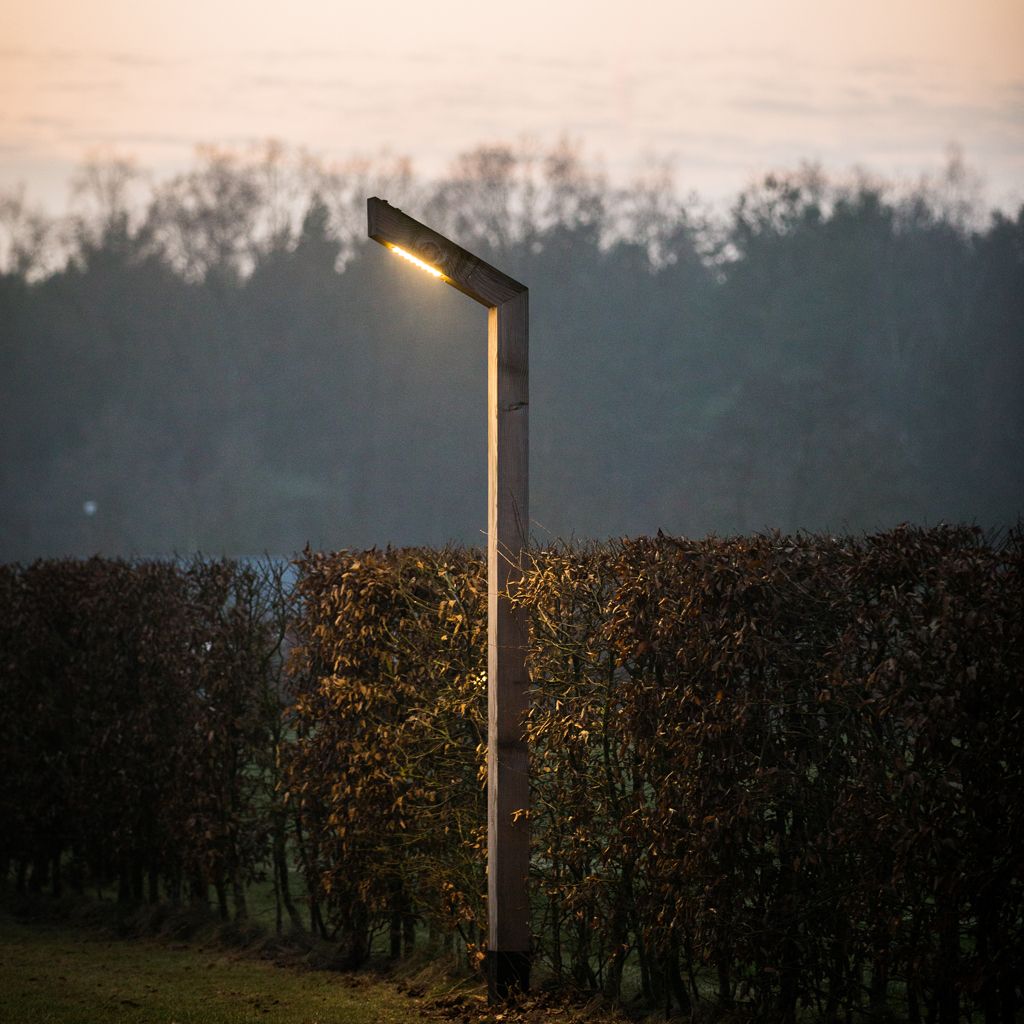 Houten verlichting langs campingweg